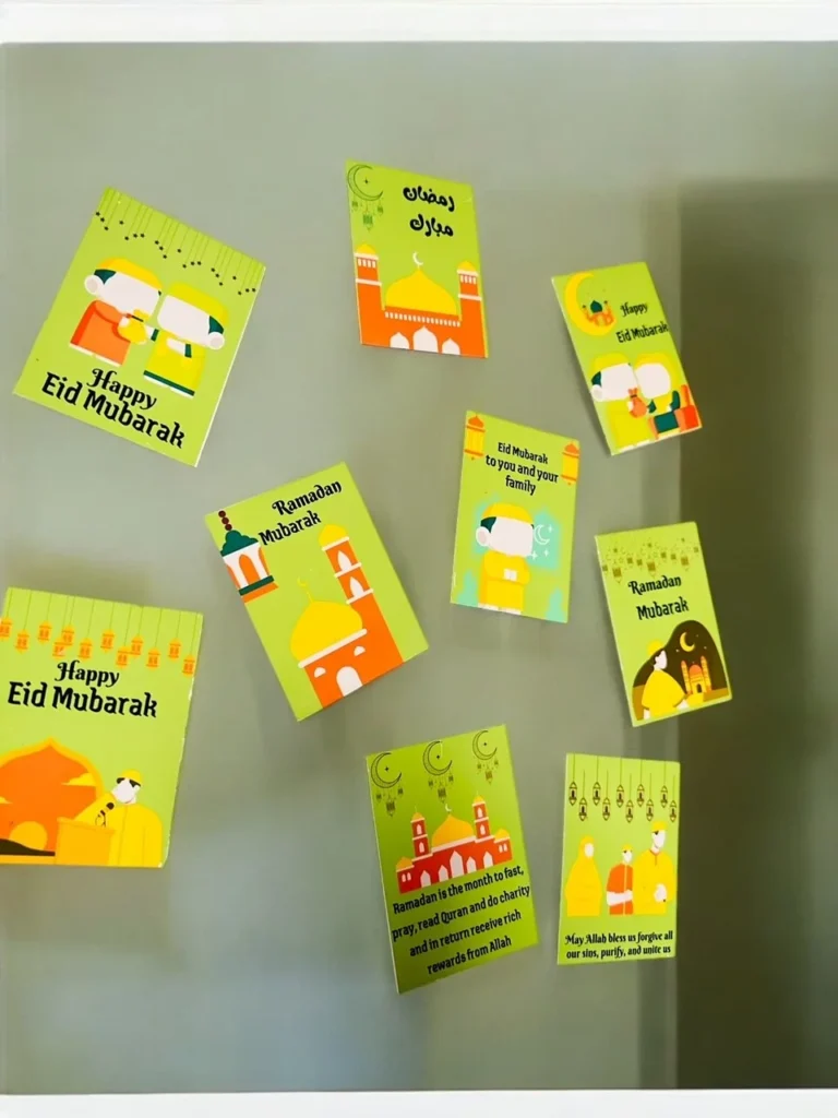 These Ramadan and Eid magnets can easily be attached to your fridge, locker, or any metal surface. Crafted from durable materials, these photo magnets make a beautiful decoration for your home during the holy month of Ramadan. They also make a thoughtful gift to give to family members or friends during Eid and Ramadan.